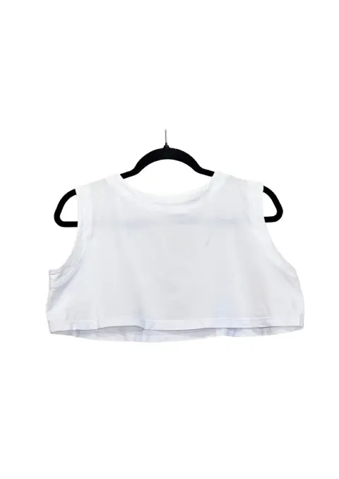 Top negro con tela fresca y amarre en el frente, con resorte en los puños de la manga.