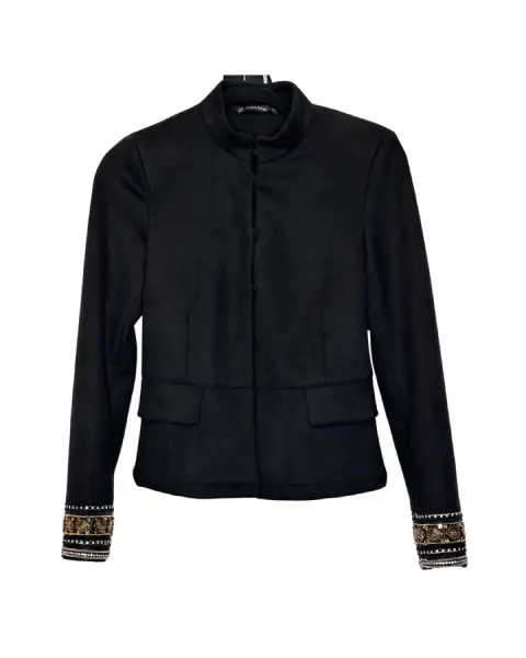 CHAQUETA PIEL DURAZNO CON BORDADO EN PUÑOS ZARA TALLA S