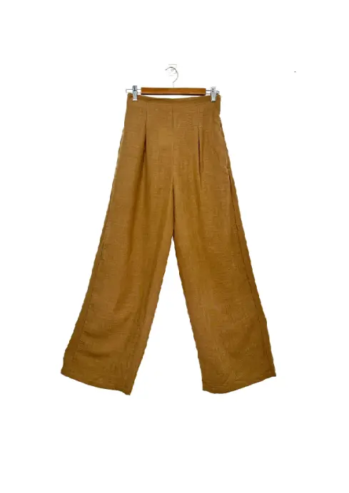Pantalón negro con pretina alta, de cuerina.