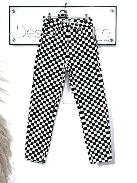 PANTALÓN DE CUADROS NEGROS Y BLANCOS STRADIVARIUS TALLA 34 (XS)