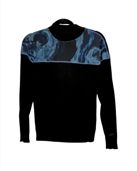 Chaqueta café gamuzada con tres bolsillos cuadrados.