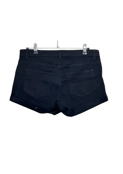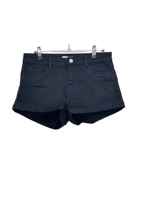 Pantalón negro de lino con prenses en cintura con resorte en la parte de atras, lleva cremallera en el costado derecho.