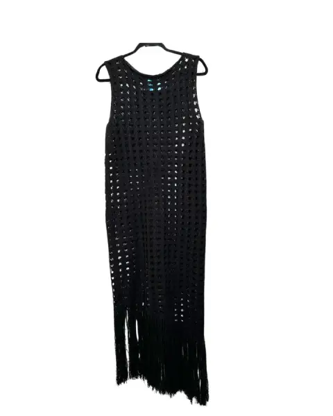 Vestido mesh tejido de punto negro con flecos.